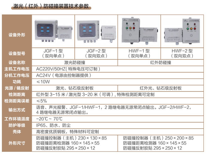 激光(紅外)防碰撞裝置技術(shù)參數(shù) 瀏覽:1379