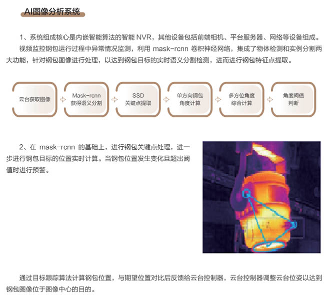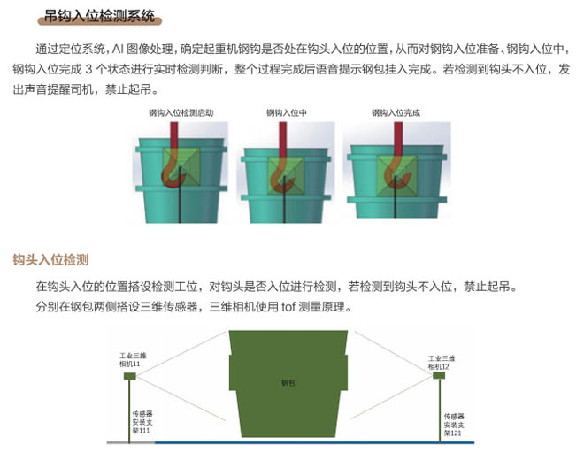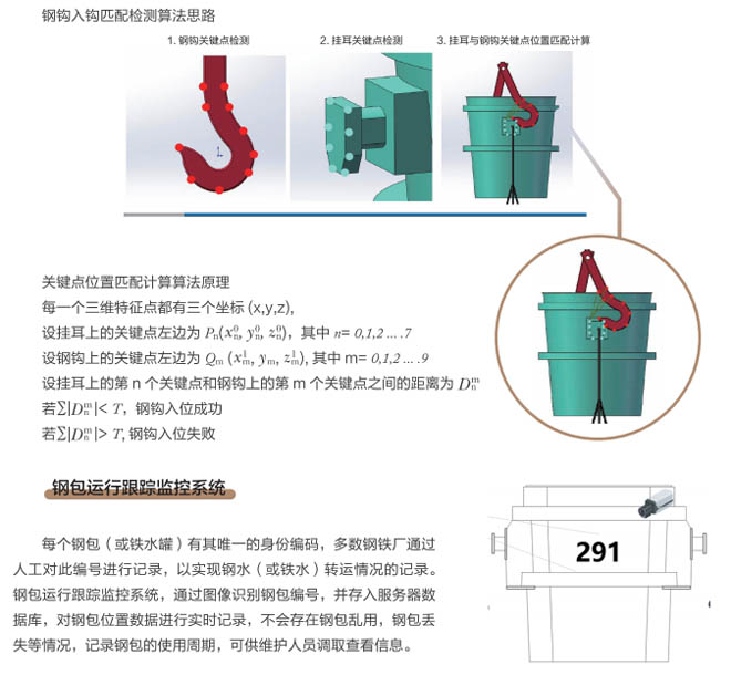 近年來,冶金行業(yè)智能化、自動化、云時代等大數(shù)據(jù)廣泛應(yīng)用,煉鋼車間是冶金行業(yè)的重點區(qū)域,廠區(qū)設(shè)備復(fù)雜、環(huán)境差、安全隱患多等因素更需要進(jìn)行設(shè)備自動化、智能化的升級管理、實現(xiàn)廠區(qū)無人化智慧工廠目標(biāo)的發(fā)展。起重機作為煉鋼、煉鐵、軋鋼車間的主要設(shè)備,起重機工作中對在工位操作越來越精準(zhǔn),需要駕駛員及時準(zhǔn)確觀察工位狀態(tài),由于駕駛室的位置和現(xiàn)場的工況環(huán)境影響經(jīng)常引起操作失誤,鋼包起吊安全事故頻發(fā),特別是對于鋼包掛鉤是否完整嵌入掛耳,是否進(jìn)入正確的起吊姿態(tài)沒有直接的判斷和監(jiān)控。研發(fā)起重機鋼包定位掛鉤識別管理系統(tǒng)是安全生產(chǎn)的剛性需求。